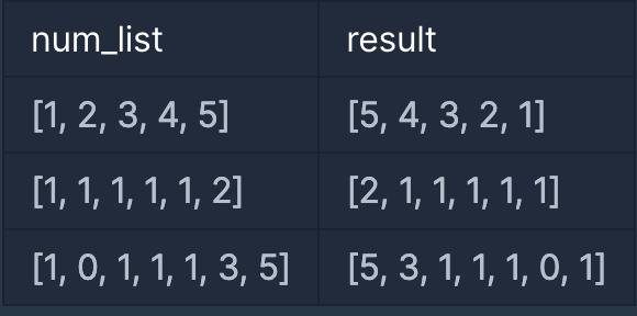 - ๋ฐฐ์ด ๊ฐ ์์๋ค์ ์์๋ฅผ ๊ฑฐ๊พธ๋ก ๋ค์ง์ ๋ฐฐ์ด์ returnํ๋๋ก solution ํจ์๋ฅผ ์์ฑ