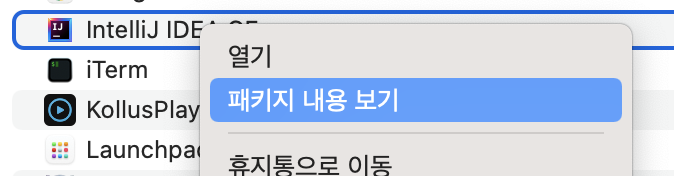 - 2) ํด๋น ํ์ผ๋ค์ค MacOS > idea ํ์ผ ์คํ