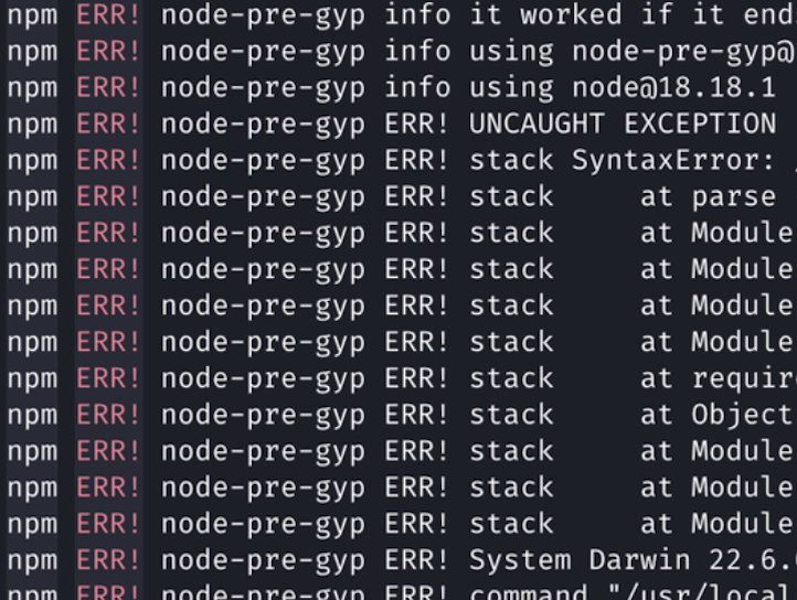 ์์ธ์ ๋ด๊ฐ ์ค์นํ ๋ผ์ด๋ธ๋ฌ๋ฆฌ๋ค์ค node ๋ฒ์ ๊ณผ ํธํ์ด ์๋๋ ๊ฒฝ์ฐ ๋ฐ์๋๋ ์๋ฌ์๋ค.